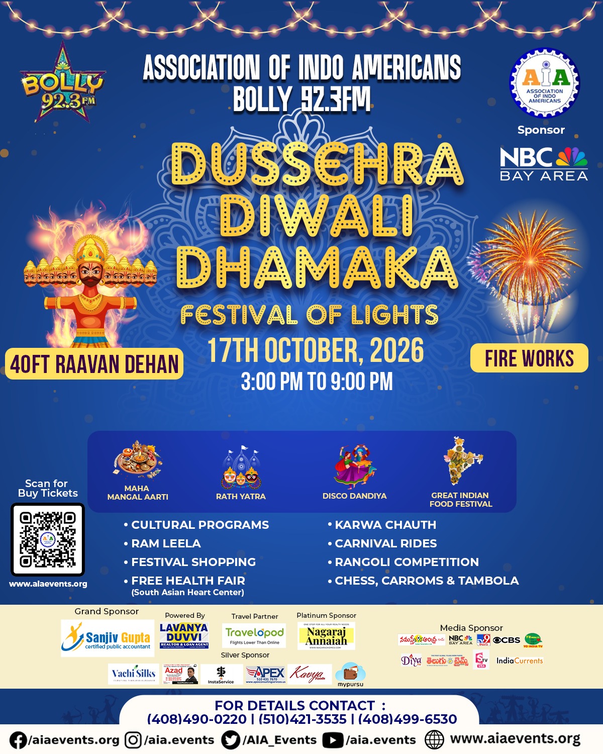 Bay Area's ONLY Diwali celebration with a spectacular live fireworks show! Join 25,000+ for Dussehra Diwali Dhamaka featuring the iconic Ravan Dehan ceremony, dazzling fireworks lighting up the night sky, electrifying Bollywood performances, 50+ food & shopping vendors, carnival rides, and a dedicated kids zone. The biggest Diwali fireworks event in Northern California!